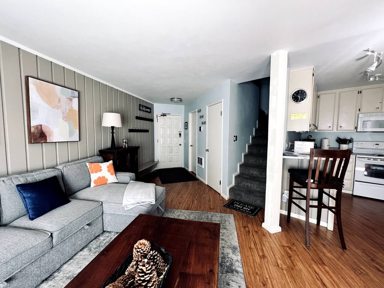 Completely remodeled in 2022, the condo has been upgraded and refurnished with guests in mind, creating an inviting and relaxing space. While staying in this beautiful home you will find comfort all around, wood stove with complementary firewood, 50 inch smart TV, high-end speaker system, fully stocked kitchen to create gourmet meals, brand new furniture and wall heaters, new linens, towels, and other necessities to make your stay more enjoyable.
